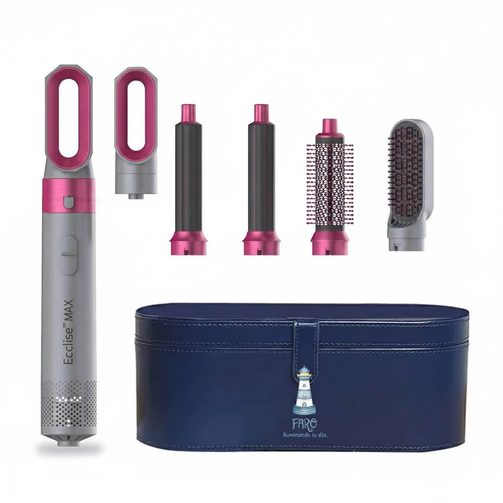 AeroLux™ incluye 5 accesorios de precisión diseñados para adaptarse a cada tipo de cabello y estilo — sin calor extremo ni frizz.