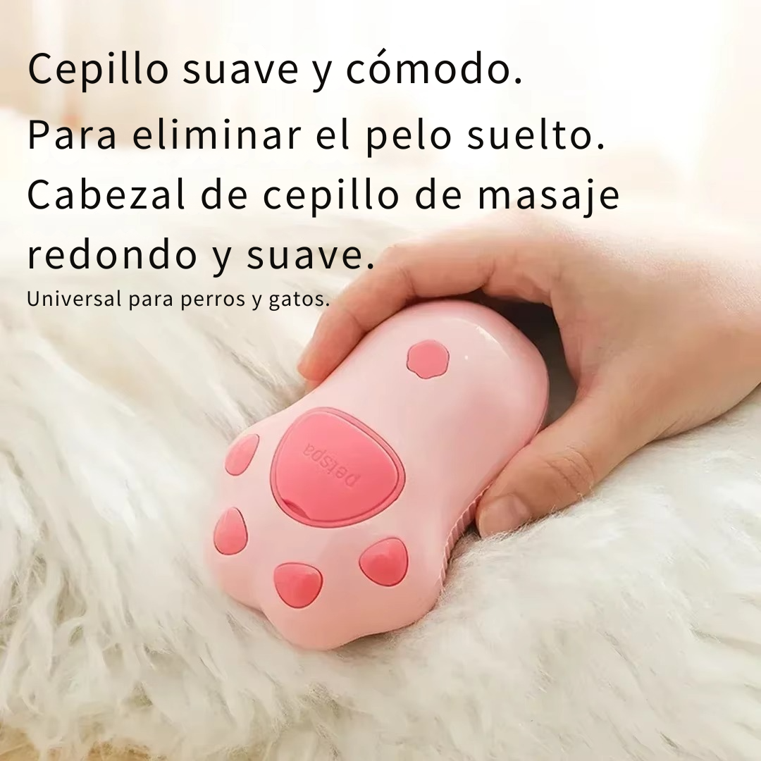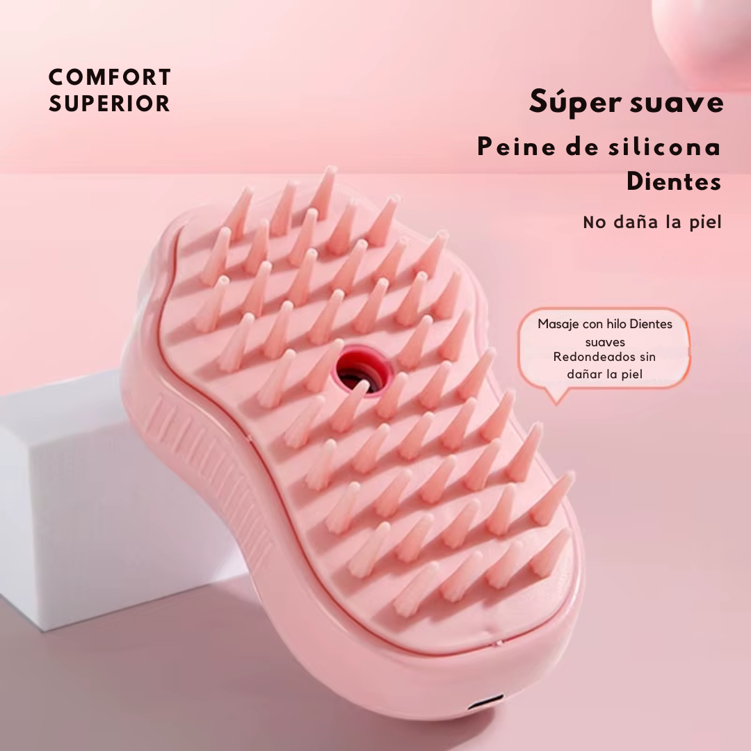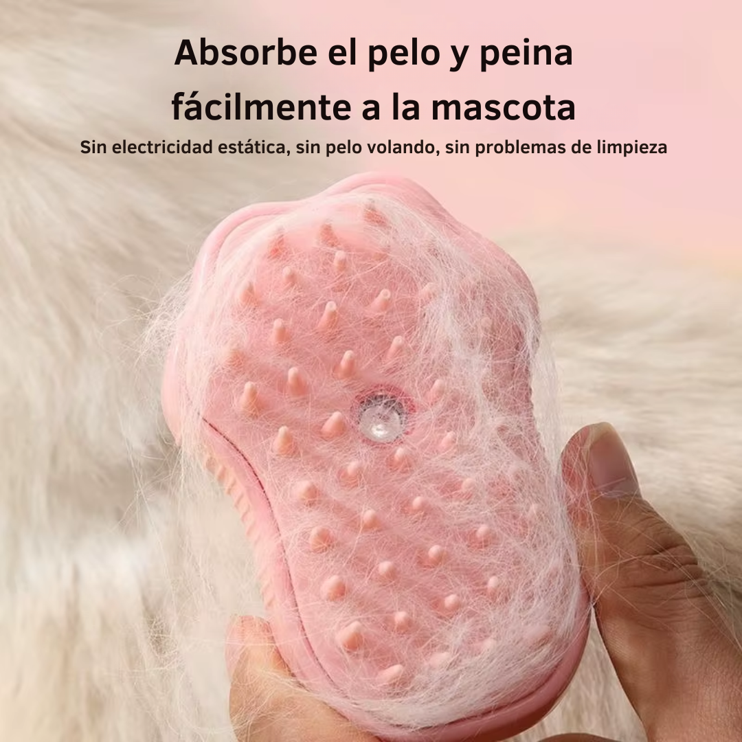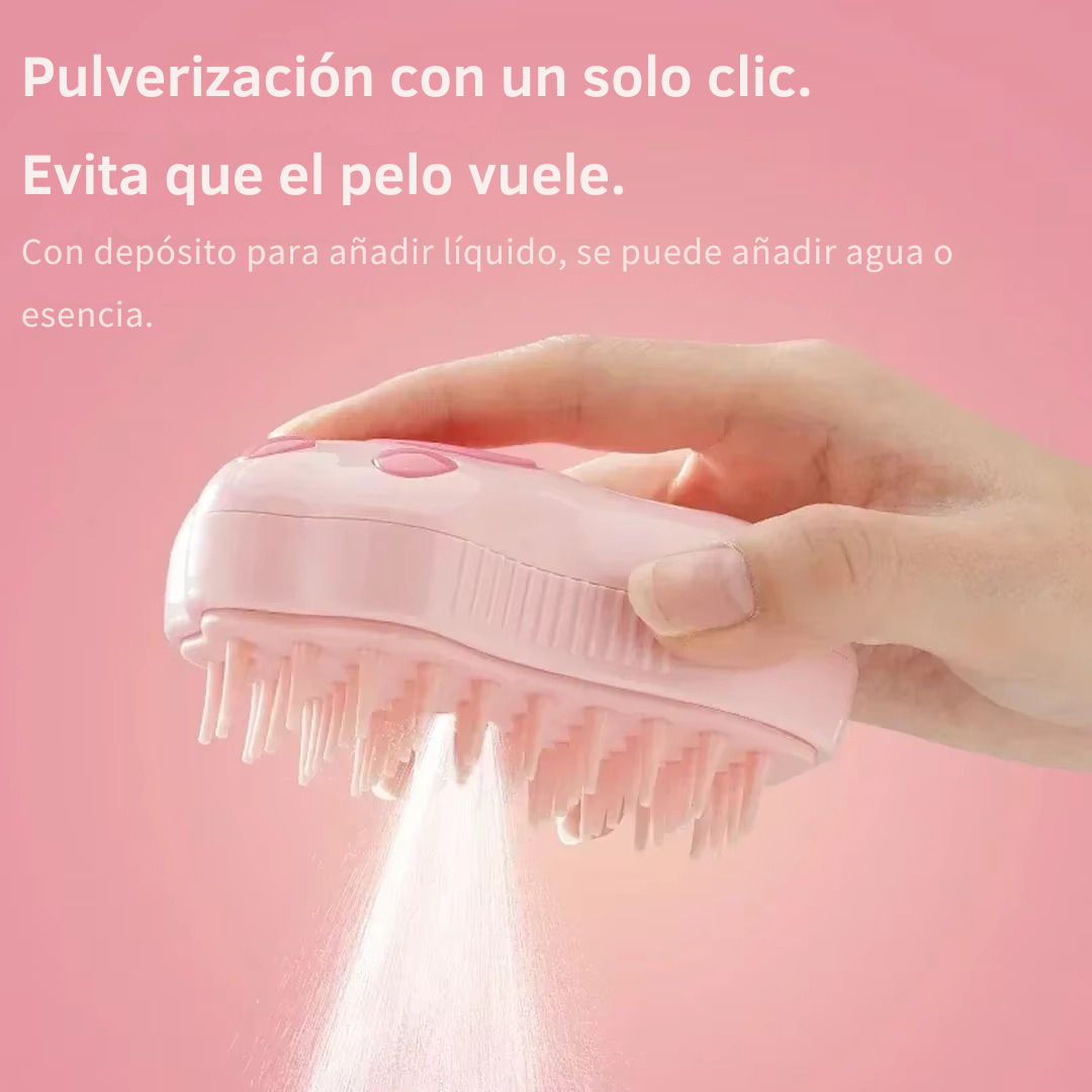 ¡Limpia de verdad! El vapor suave ayuda a aflojar y eliminar el polvo, la caspa y la suciedad superficial que están pegados al pelaje (algo que un cepillo seco no hace). Pero su mayor poder está en el control del pelo muerto: la humedad atrapa todo ese pelo suelto en el cepillo, evitando que vuele por el aire y termine en tu ropa o sillones. Es un 3-en-1: desenreda, limpia y controla la muda.