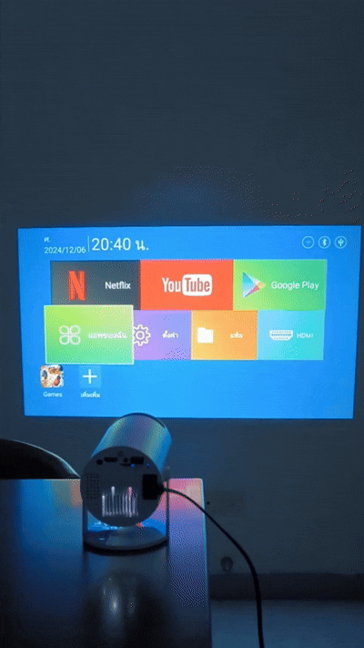 - Modo Smart TV (Cine): Utiliza la interfaz nativa Android del proyector para ver películas o series en Netflix y YouTube, convirtiendo cualquier pared en un cine.