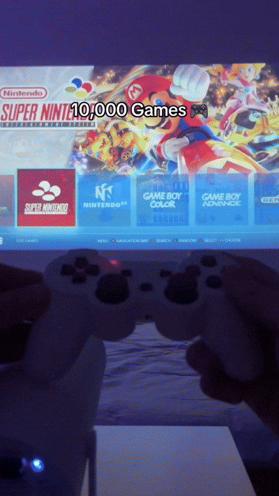 ¿Tu amigo prefiere Mario Kart 64? Lo tienes. ¿Otro quiere un torneo de Bomberman de SNES? También. Todo en un menú simple, listo para proyectar y que empiece la junta.